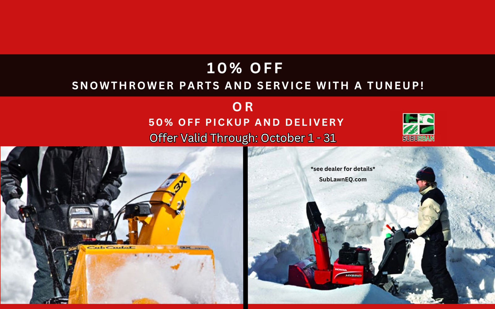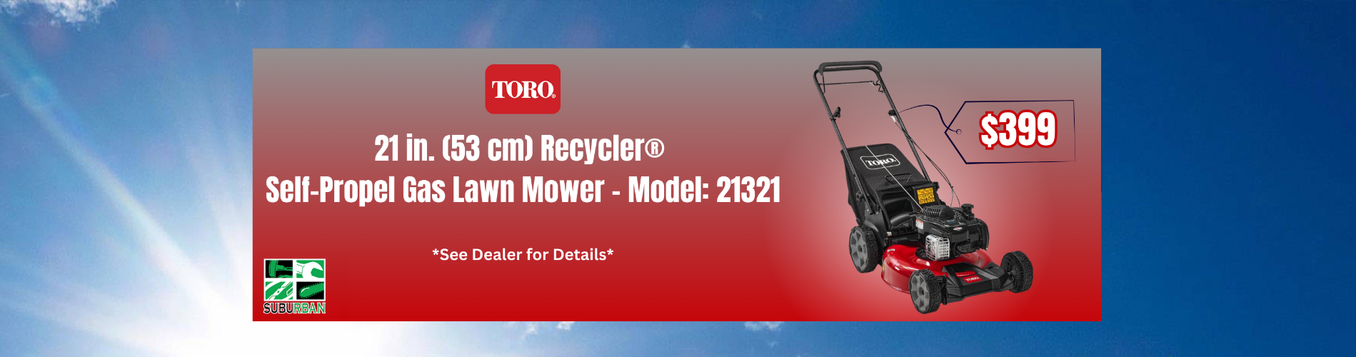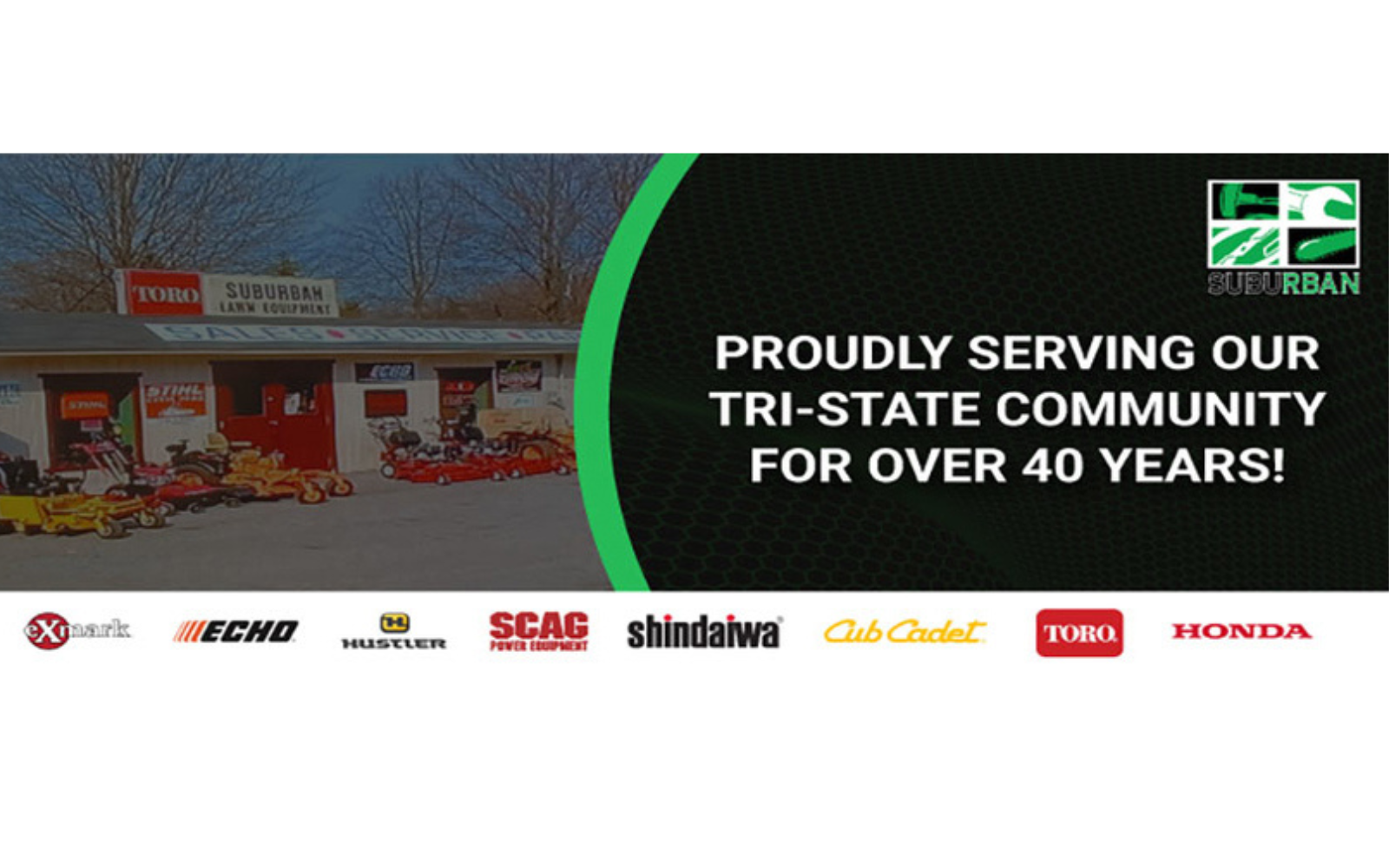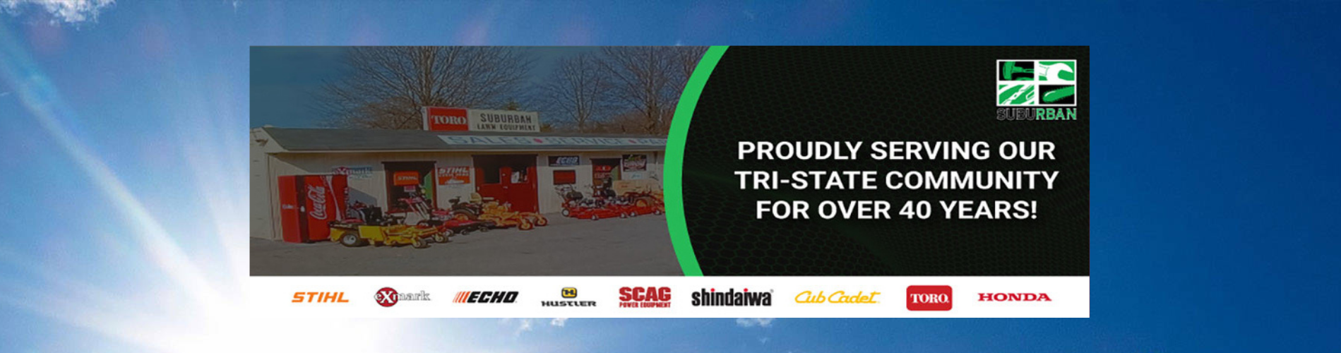 Suburban Lawn Equipment sells and services quality outdoor power equipment including zero turn lawn mowers, walk behind lawn mowers, riding lawn mowers, snow throwers, snow plows, string trimmers, chainsaws, backpack blowers, edgers, generators and more You can count on our knowledgeable and friendly staff to help you find the right product for your needs. They carry Honda power equipment, Stihl power equipment, Echo power equipment, Honda multi-purpose pumps, Toro lawn mowers, Honda multi-purpose pumps, Scag lawn mowers, Cub Cadet lawn mowers, Honda generators, Honda generators, Exmark lawn mowers, Honda lawn mowers, Hustler lawn mowers, Walker lawn mowers, Honda replacement engines, Boss snow plows and SnowEX salt & sanders