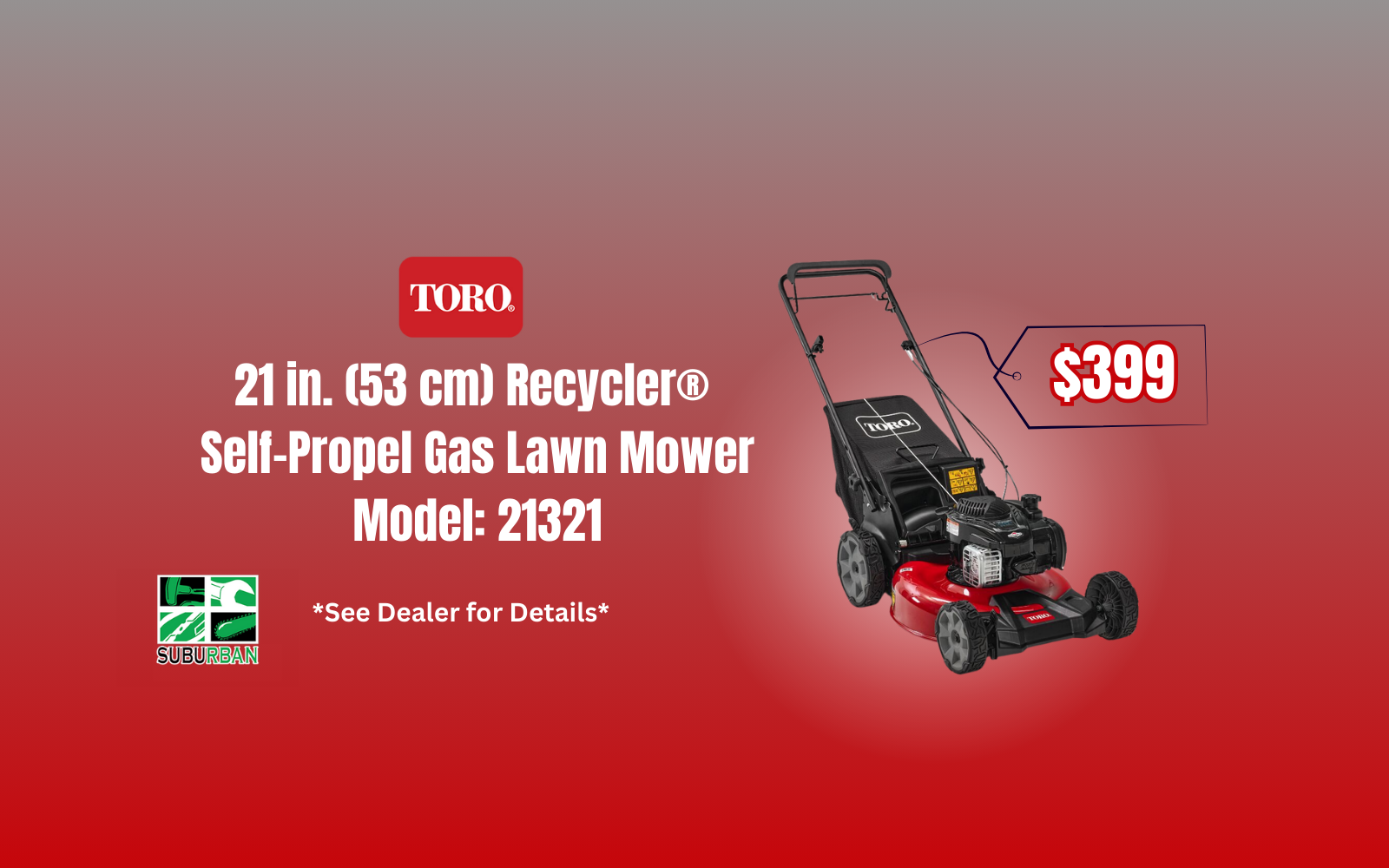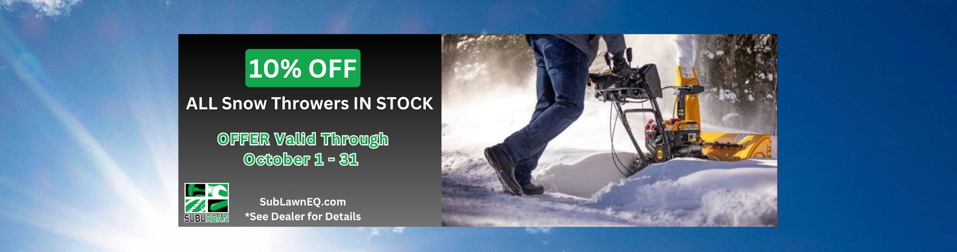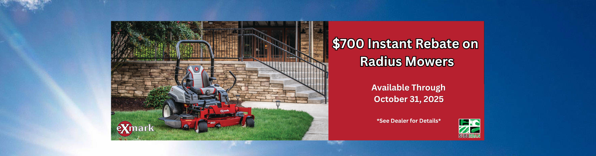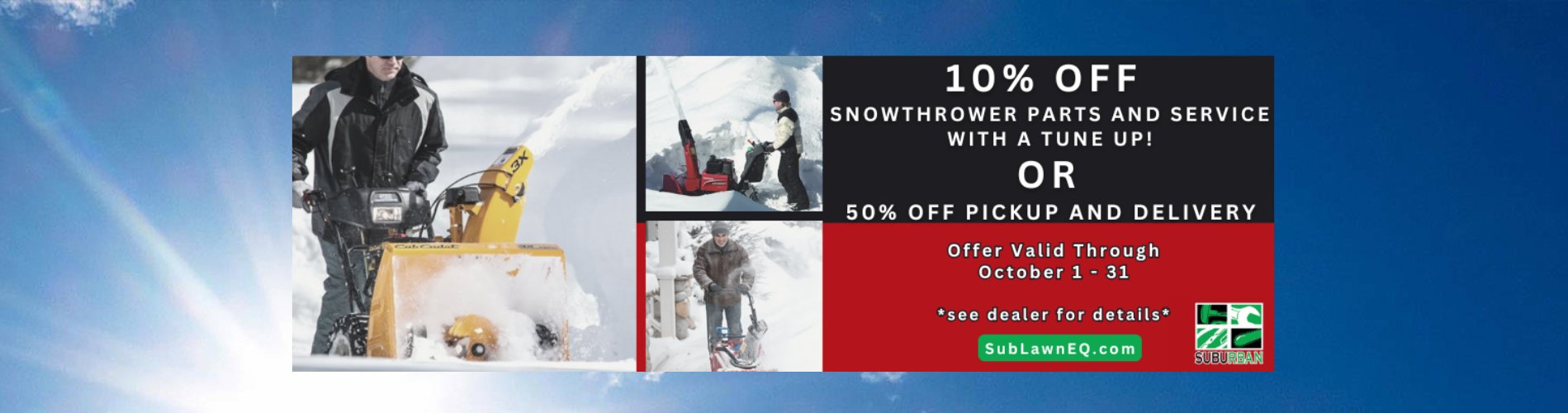 Suburban Lawn Equipment sells and services quality outdoor power equipment including zero turn lawn mowers, walk behind lawn mowers, riding lawn mowers, snow throwers, snow plows, string trimmers, chainsaws, backpack blowers, edgers, generators and more You can count on our knowledgeable and friendly staff to help you find the right product for your needs. They carry Honda power equipment, Stihl power equipment, Echo power equipment, Honda multi-purpose pumps, Toro lawn mowers, Honda multi-purpose pumps, Scag lawn mowers, Cub Cadet lawn mowers, Honda generators, Honda generators, Exmark lawn mowers, Honda lawn mowers, Hustler lawn mowers, Walker lawn mowers, Honda replacement engines, Boss snow plows and SnowEX salt & sanders