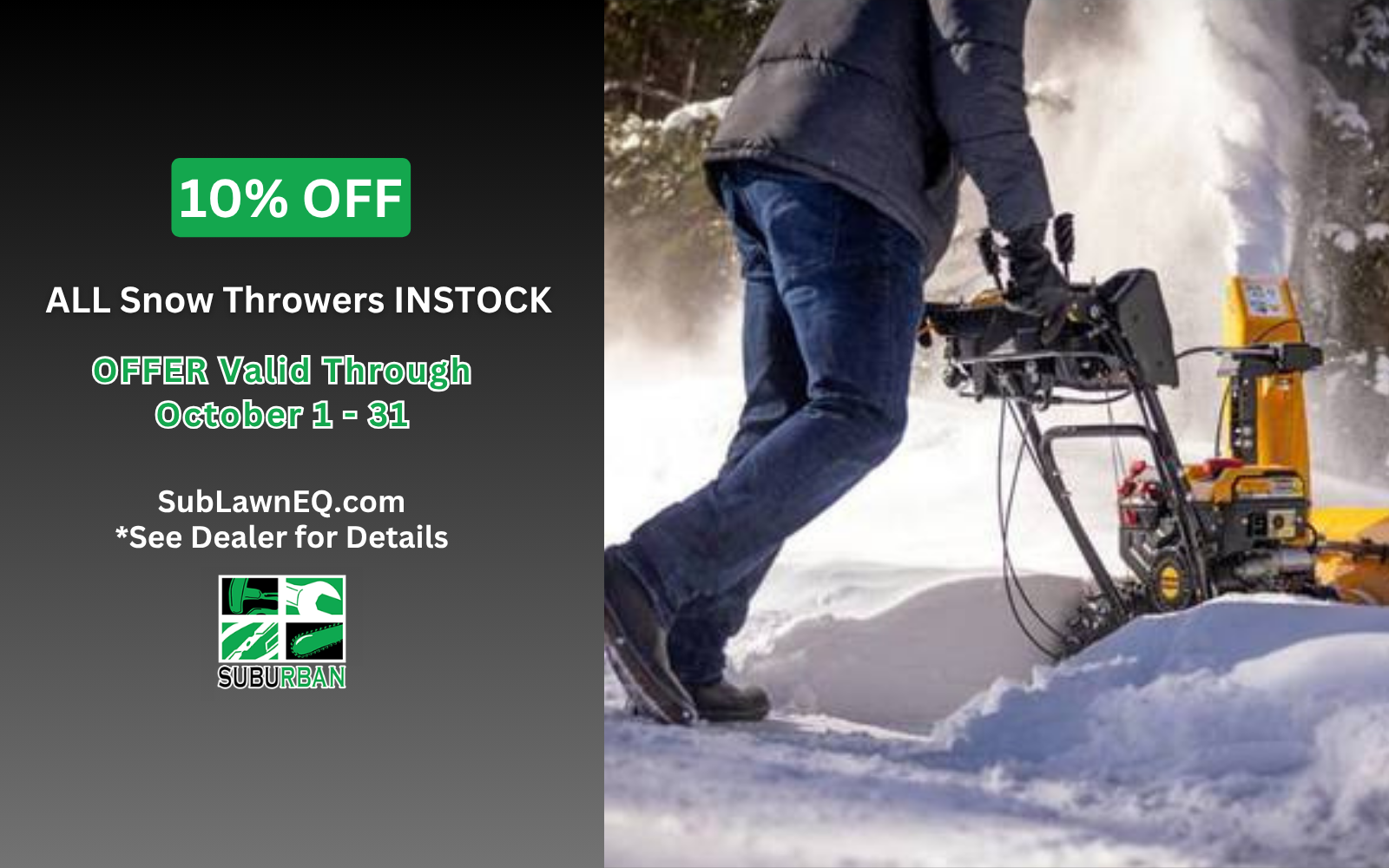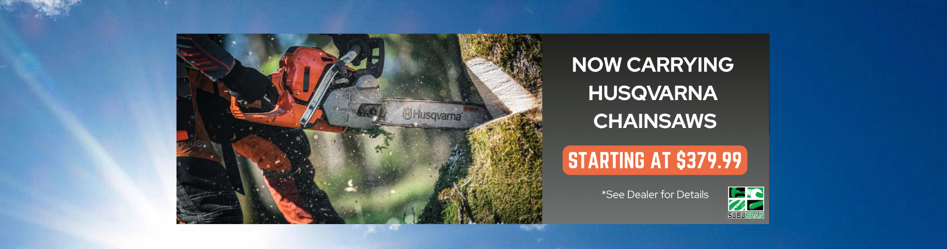 Suburban Lawn Equipment sells and services quality outdoor power equipment including zero turn lawn mowers, walk behind lawn mowers, riding lawn mowers, snow throwers, snow plows, string trimmers, chainsaws, backpack blowers, edgers, generators and more You can count on our knowledgeable and friendly staff to help you find the right product for your needs. They carry Honda power equipment, Stihl power equipment, Echo power equipment, Honda multi-purpose pumps, Toro lawn mowers, Honda multi-purpose pumps, Scag lawn mowers, Cub Cadet lawn mowers, Honda generators, Honda generators, Exmark lawn mowers, Honda lawn mowers, Hustler lawn mowers, Walker lawn mowers, Honda replacement engines, Boss snow plows and SnowEX salt & sanders