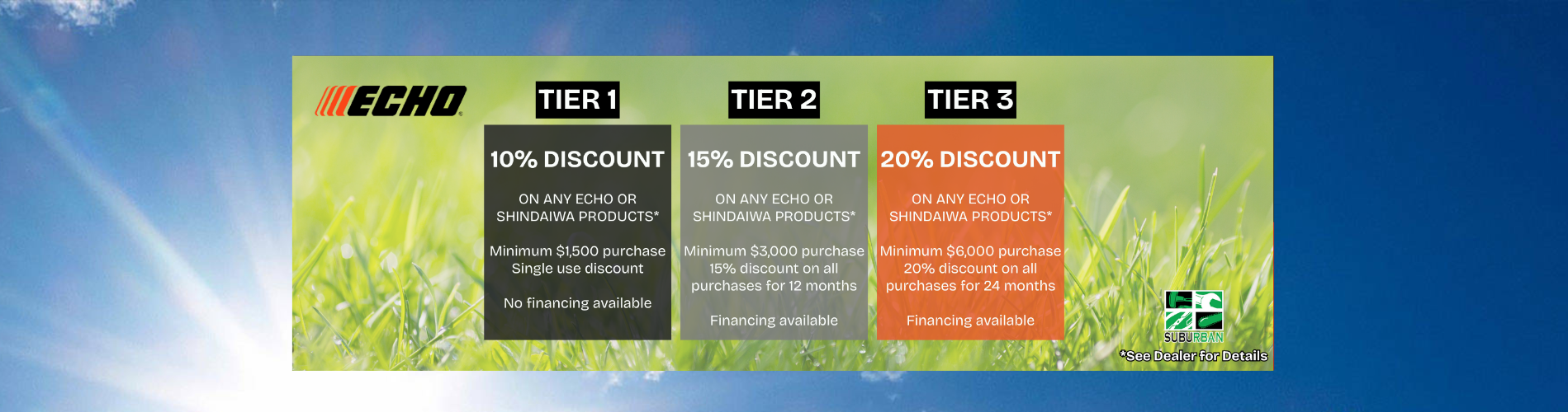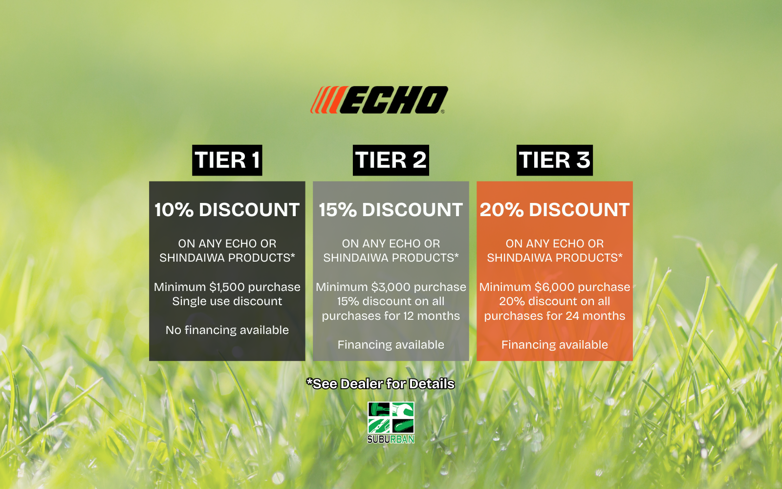 Suburban Lawn Equipment has been providing first class service to the outdoor power equipment industry since 1981. Excellent products and outstanding before-and-after-sales service has earned us a stellar reputation. We’re happy to service anything we sell. Bring your zero turn lawn mowers, walk behind lawn mowers, lawn tractors, riding lawn mowers, etc. to us any time you need a tune-up or maintenance and repairs. Our technicians are certified by the Equipment & Engine Training Center (EETC) and stay current by attending all sales and service seminars offered by our manufacturers. For our customers this means experienced trouble shooting and flawless work with no room for complaints.We make customers for life — hear it from our customers themselves! From New Castle County, Chester County and Delaware County in Pennsylvania to Cecil County, Maryland and Salem County, New Jersey; we are known for serving every customer with the same, personalized attention. We want you to be our customers for life. We will go the extra mile to make certain you have exactly what you need. We also offer financing to make it easier for our customers to afford quality lawn tractors, mowers and other outdoor power equipment. We take pride in what we sell and service. Our Scag Pro Gold Dealer, Honda Power Choice Dealer, Exmark Turf Star Club and Echo Signature Elite Dealer awards are proof of our commitment to excellence.